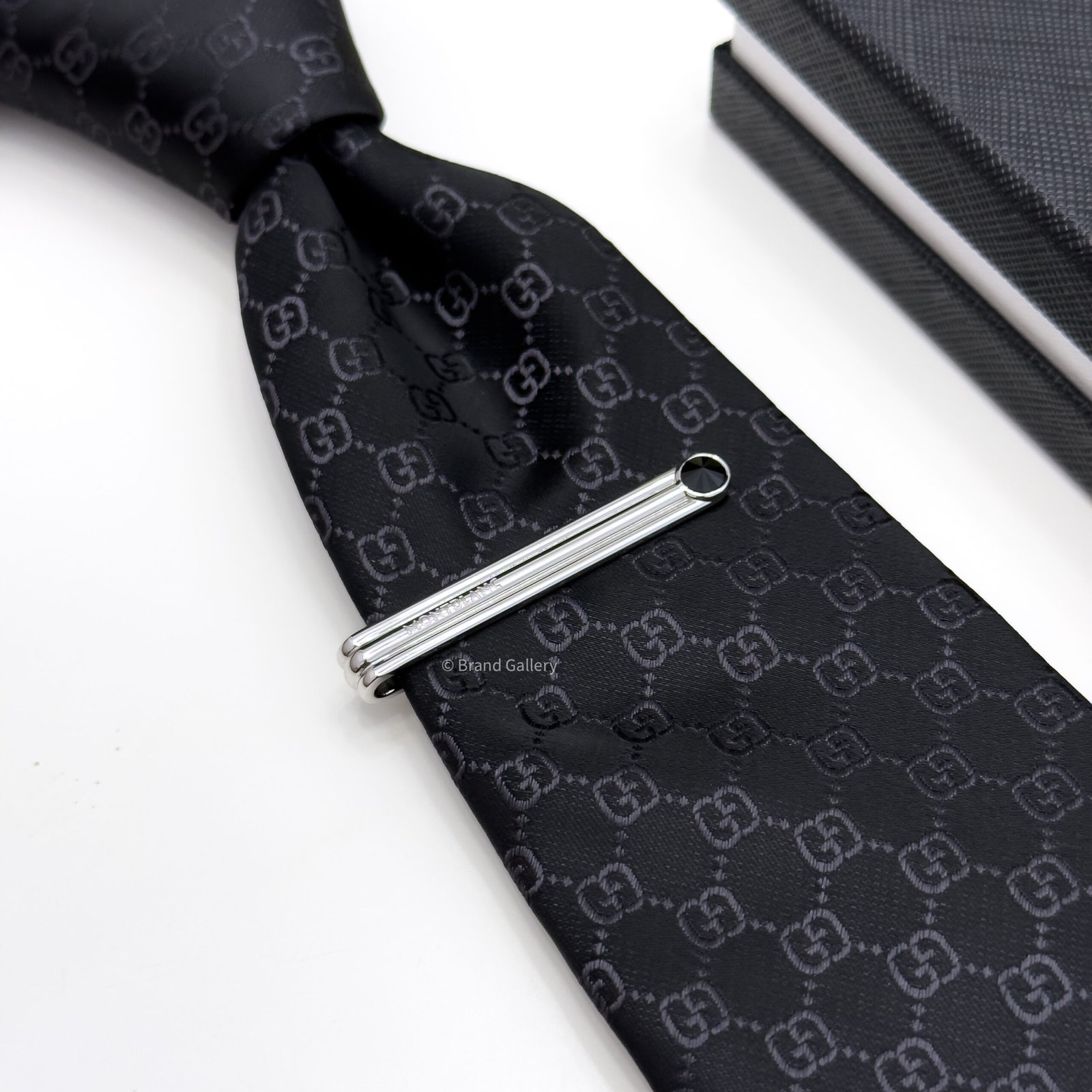 The MB Facetted Onyx Tie Bar in stainless steel and black Facetted Onyx embodies the meeting of style and sophisticated elegance.