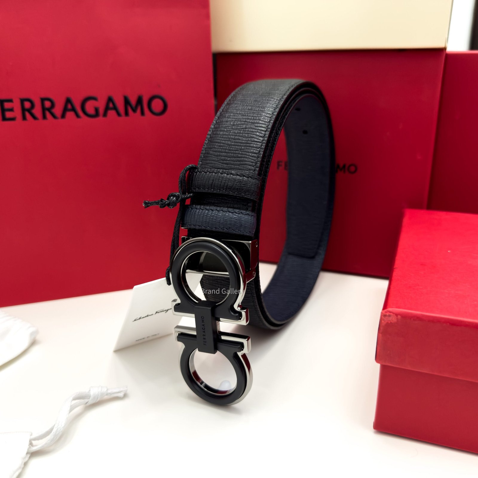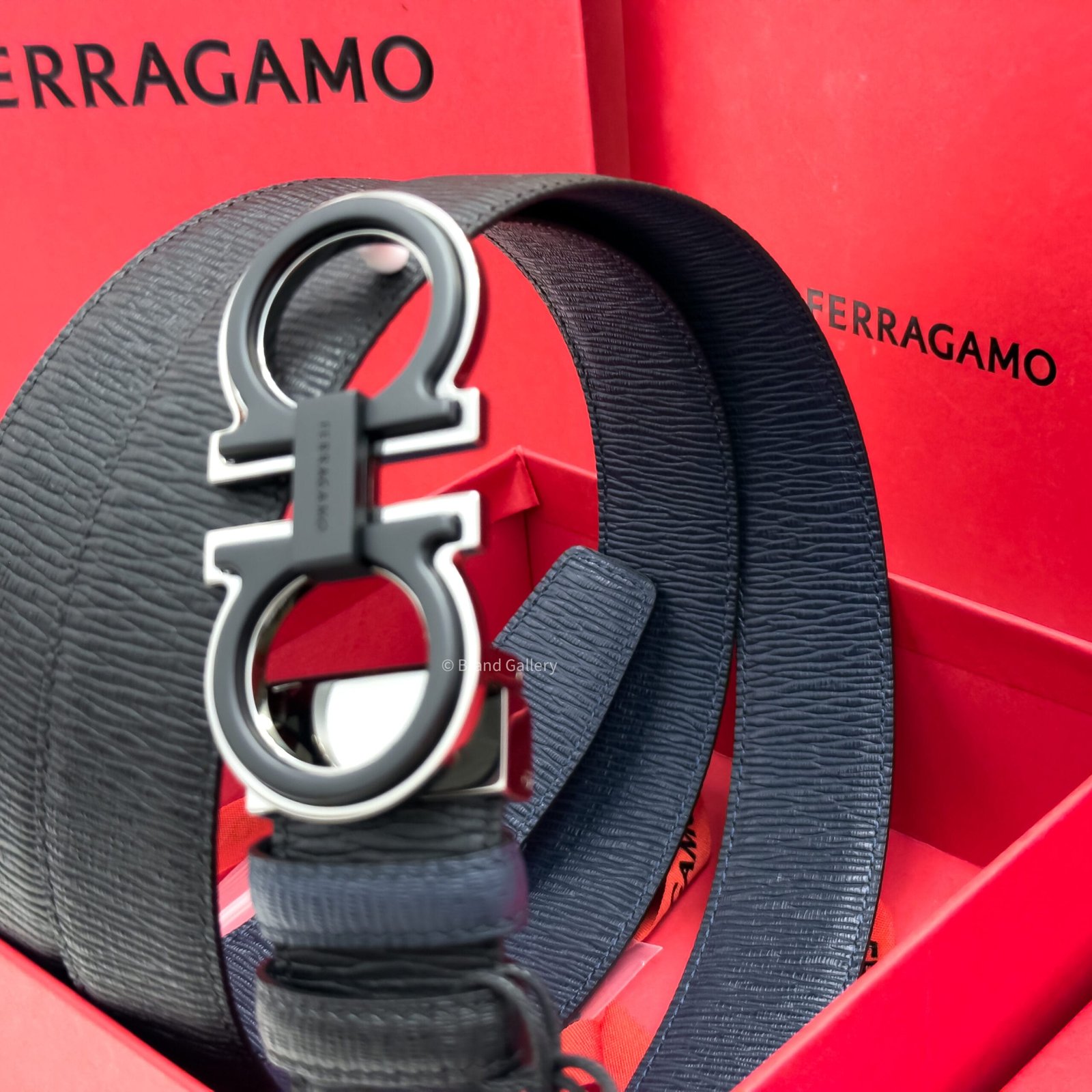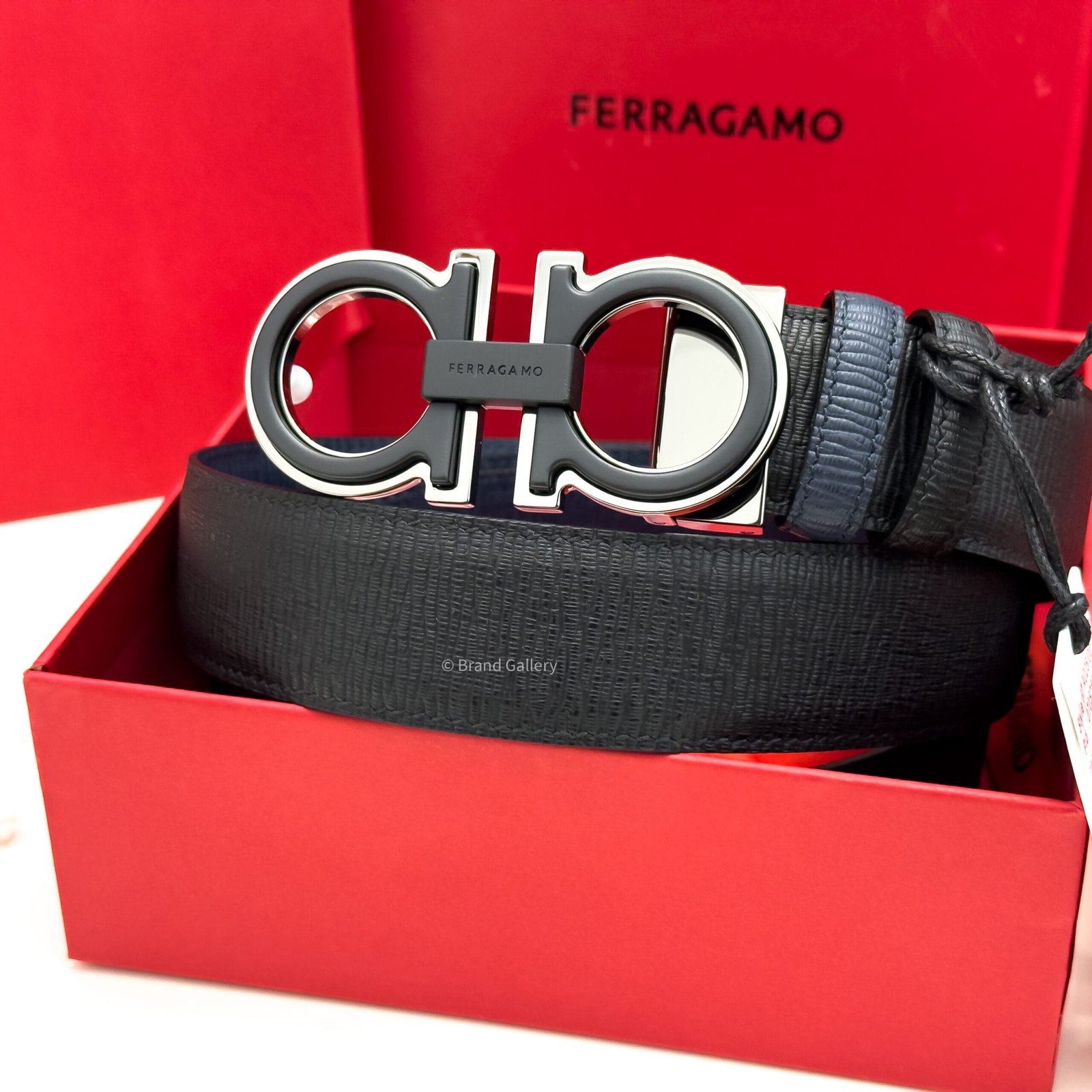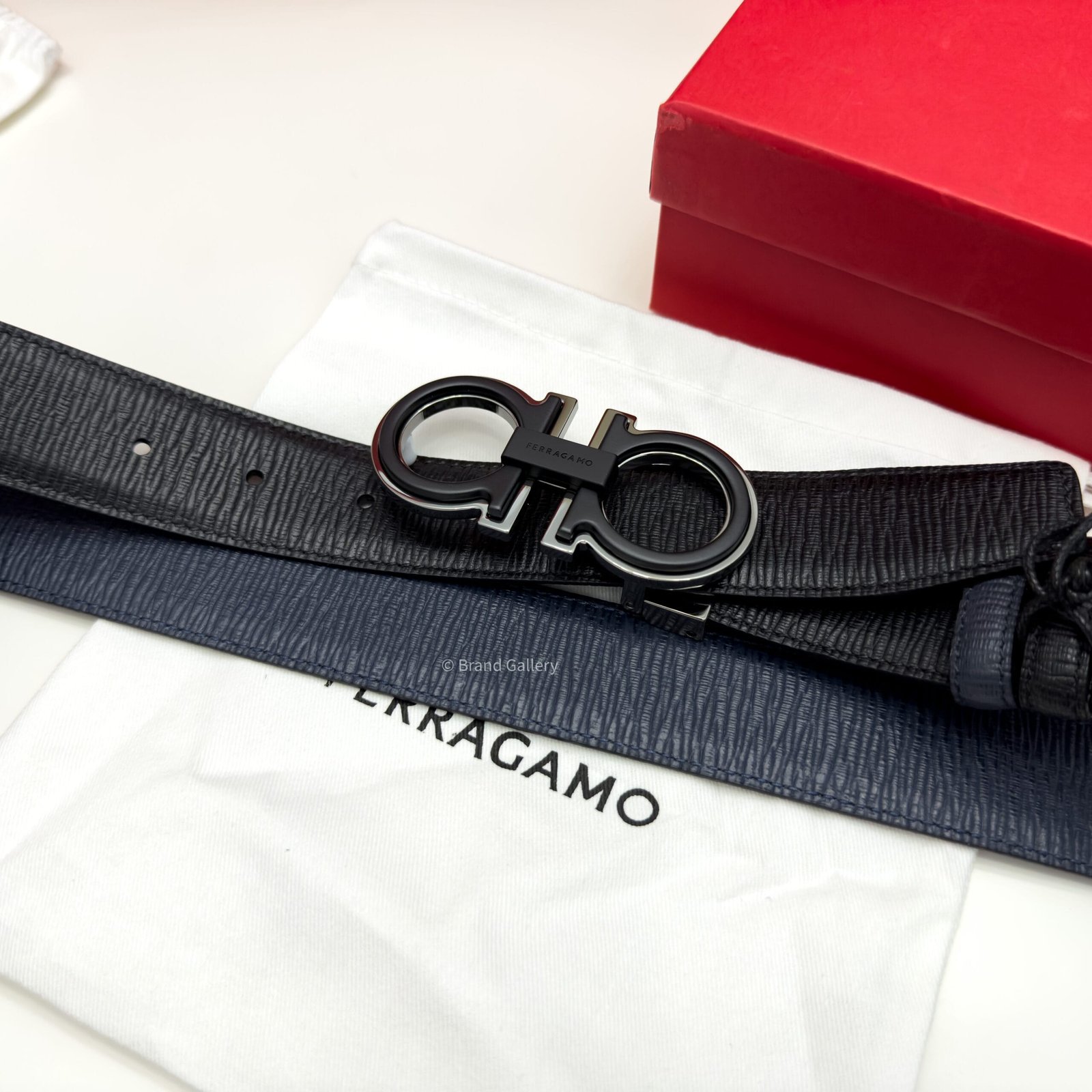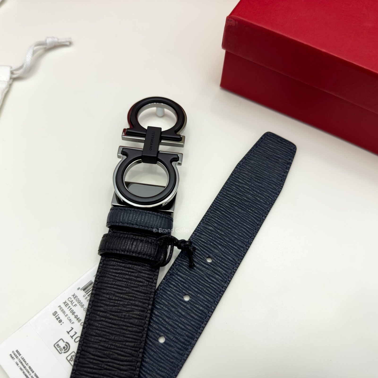 Ferragamo Gancini Black/Blue Grain Reversible Leather Belt | A&A – Brand Gallery | Egypt.