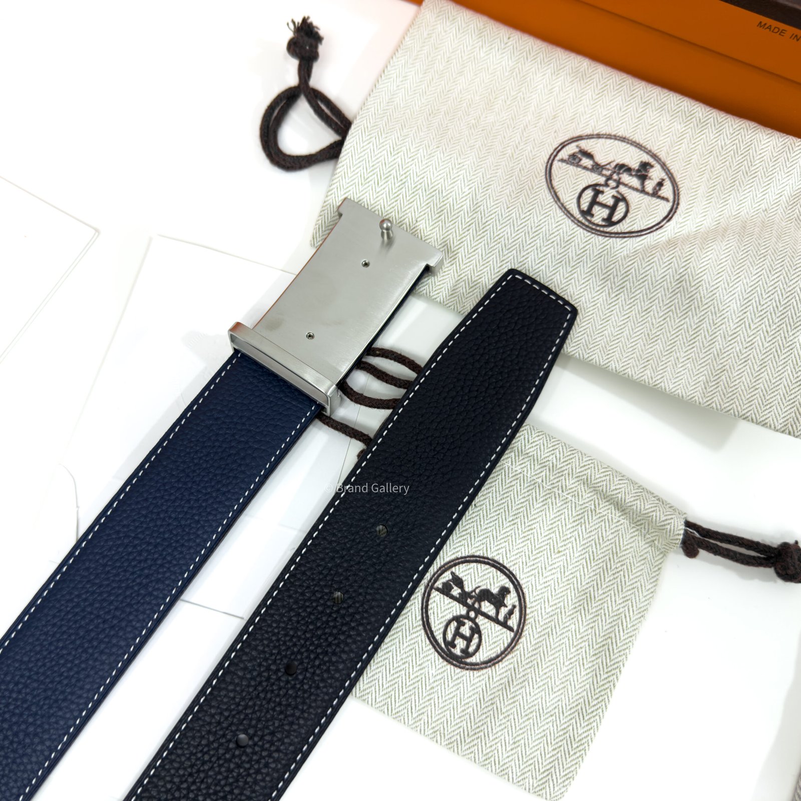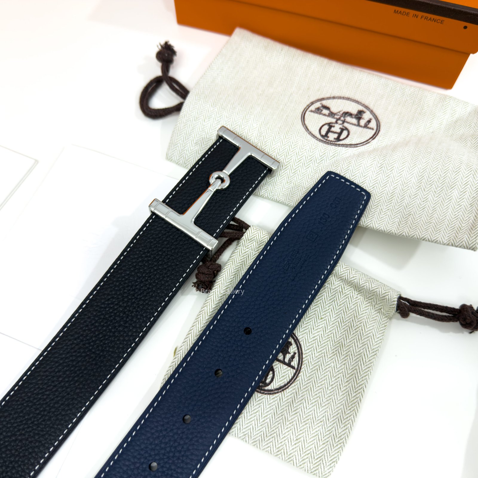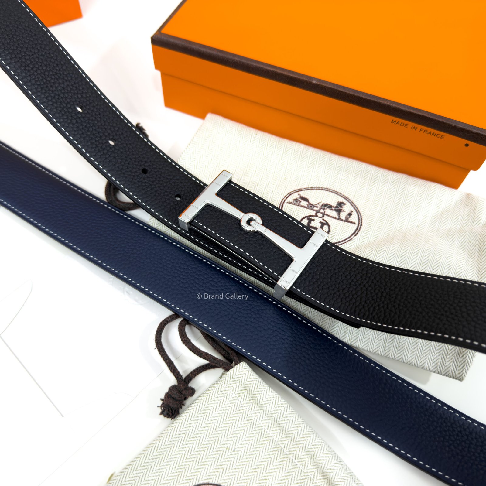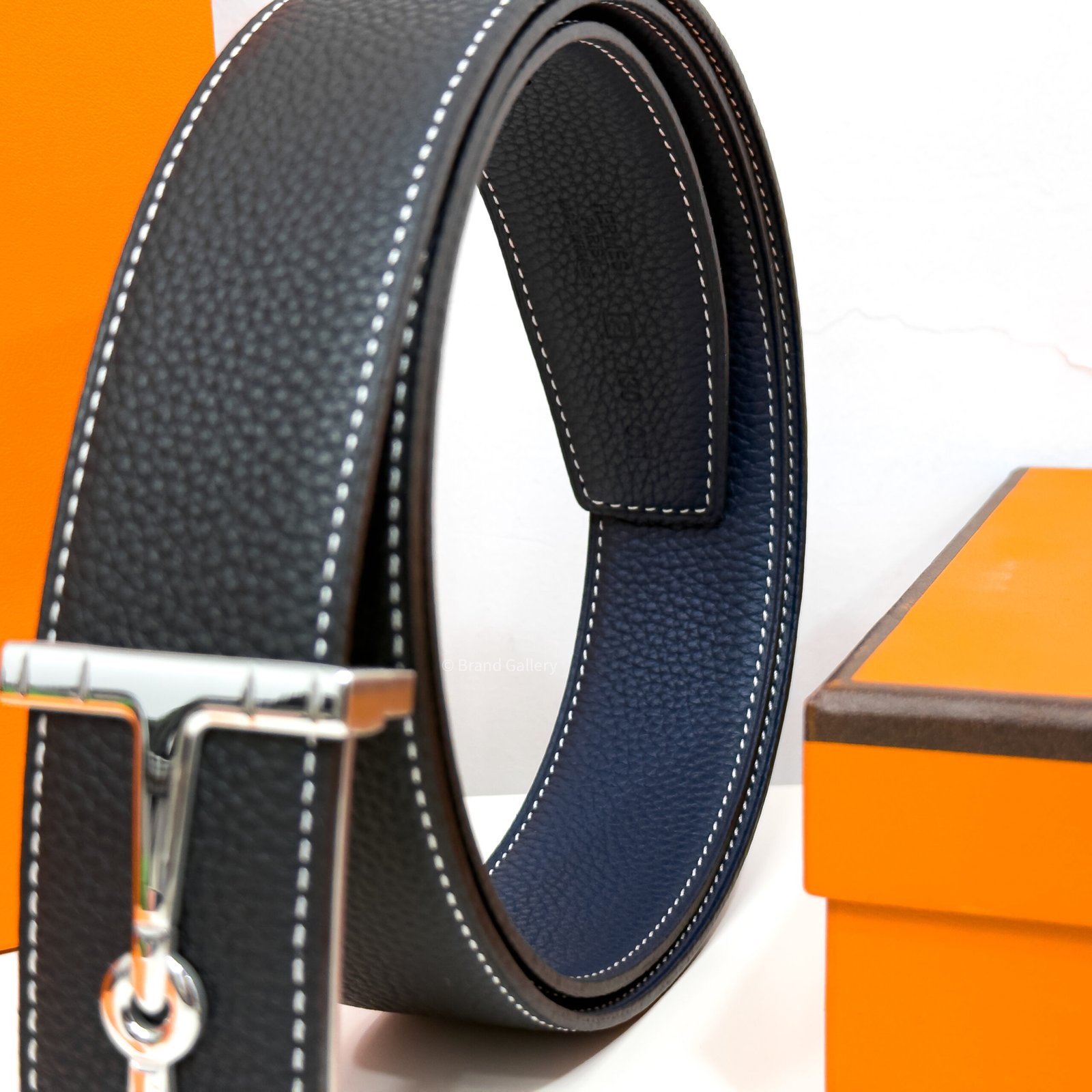 & Reversible leather strap in Box 135 and Togo calfskin.